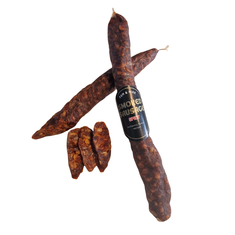 Tom and Mike home made spicy smoked sausage 1 pair cc. 250g